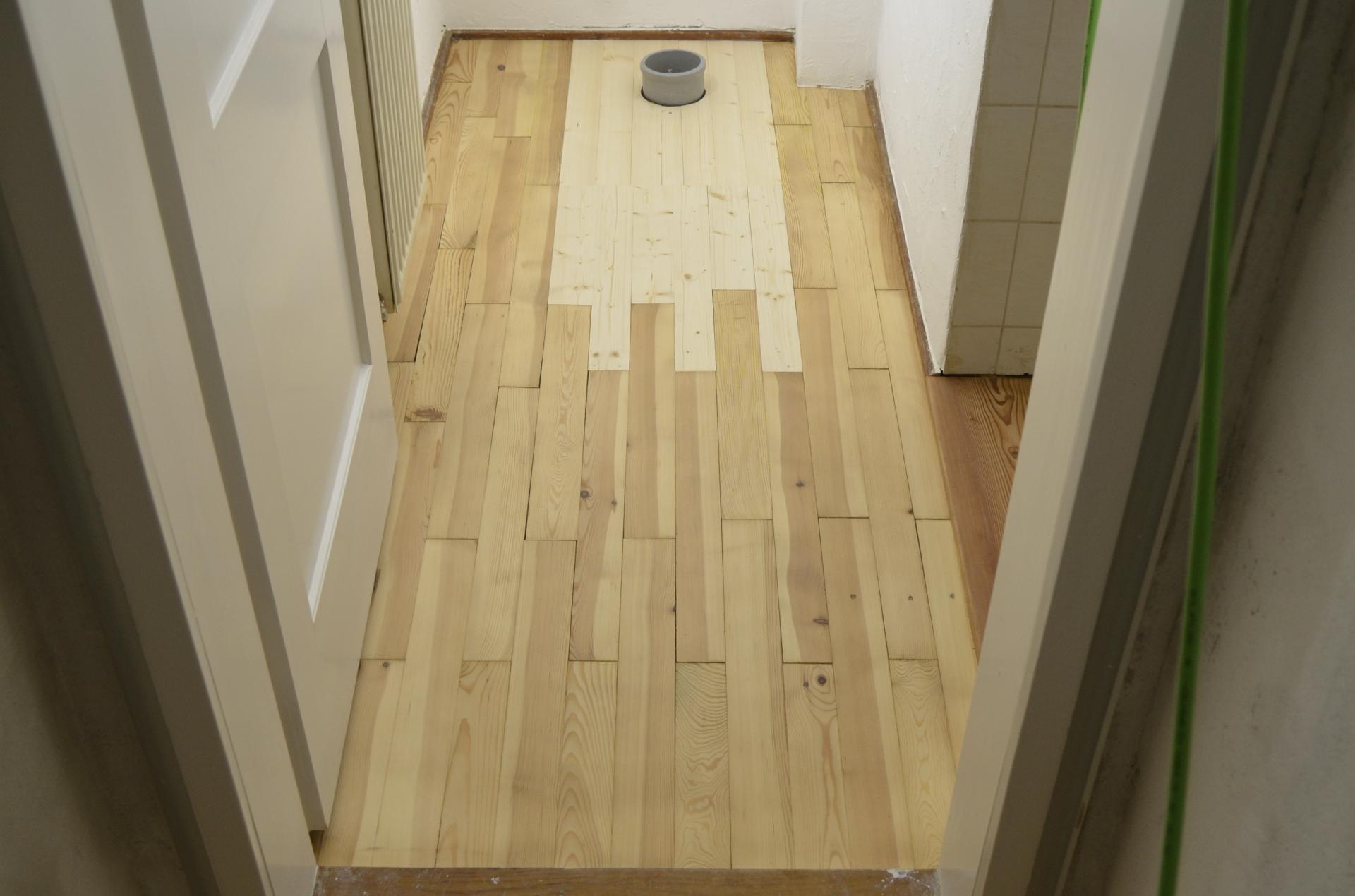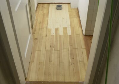 Auch Problemfälle, wie z.B. morsche Parkettstäbe im Bereich eines WCs, haben wir erfolgreich gelöst. In diesem Fall haben wir überstarke Stäbe mit passender Nut gefertigt und samt Verstärkungen eingebaut, die aktuell das Stand-WC bis zu einer in einigen Jahren ohnehin anstehenden Sanierung des kompletten Bades sicher tragen.
