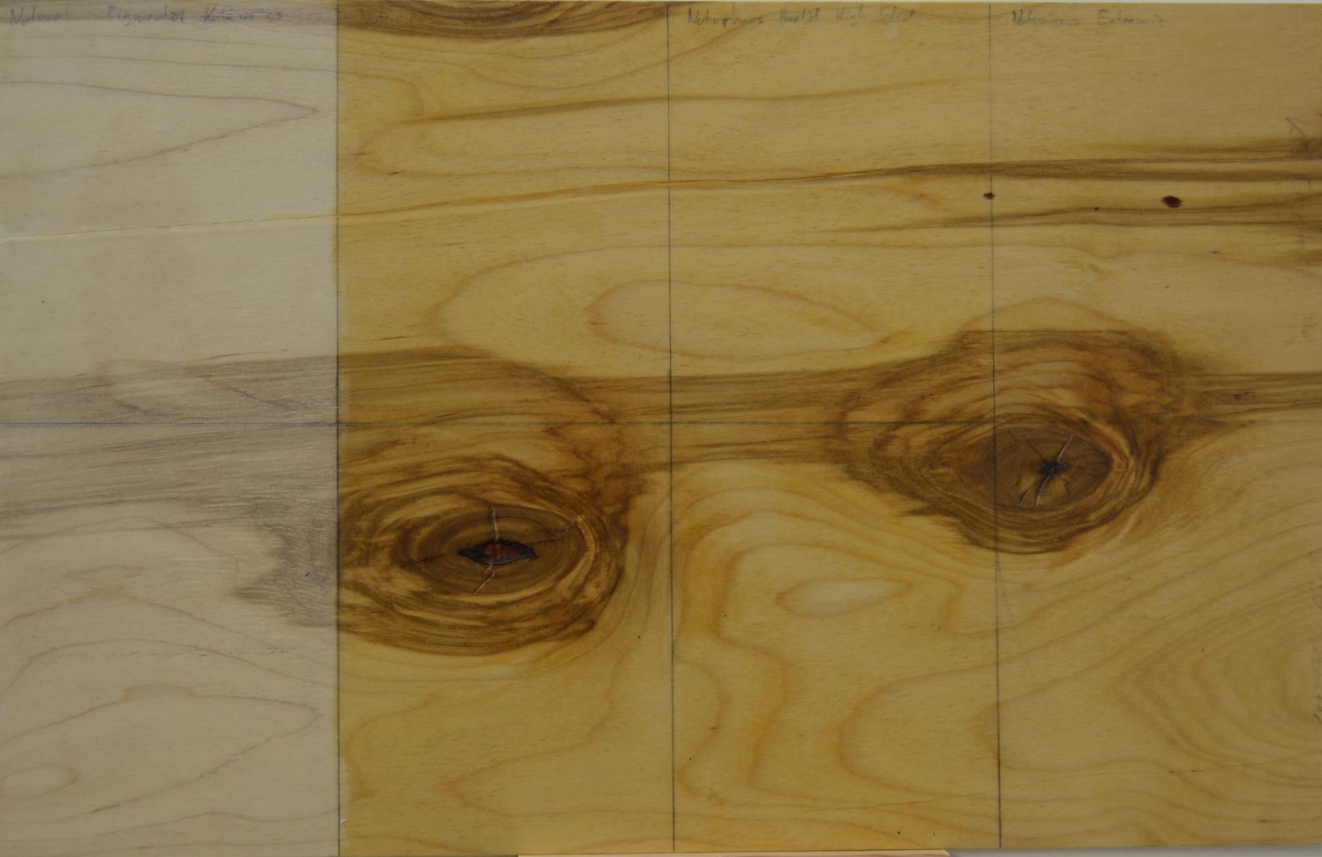 Wir machen immer wieder Versuche und Muster mit auch neuen Materialien und kennen inzwischen den „Charakter“ einiger Produkte recht gut. Wir arbeiten so gut wie immer ölbasiert, möglichst lösemittelarm und nicht oder nur gering schichtbildend.