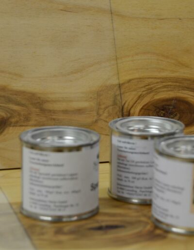 Die von uns verwendeten Öle, Hart- und Hartwachsöle sind zum Großteil volldeklariert und somit in Bezug auf ihre Inhaltsstoffe transparent. Wir vermeiden überflüssige Konservierungsstoffe und Lösemittel und minimieren dadurch das Allergiepotential. Bei den für manche Stoffe unabdingbaren Lösemitteln versuchen wir, möglichst unproblematische Zusammensetzungen zu verwenden und so Belastungen für Menschen, Tiere und Umwelt gering zu halten. Nicht immer sind dabei Stoffe natürlichen Ursprungs die unproblematischsten. Gerade für sehr sensible Personen können Balsamterpentin und Orangenschalenöl bzw. Zitrusterpene beispielsweise sehr unangenehm bis allergen sein, während viele andere diese Stoffe und ihren Geruch als angenehm empfinden. Auch deshalb ist es vorher gut zu wissen, was sich in der Dose befindet.