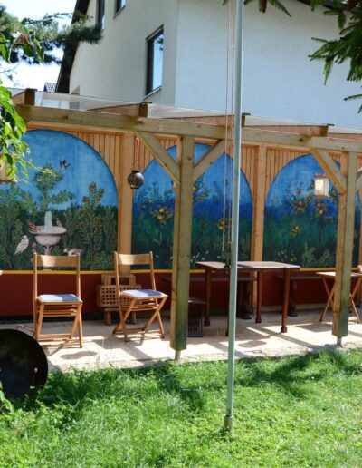 Im Zuge einer Umgestaltung und der Erneuerung defekter Geländer sollte auch der Platz auf der Terrasse etwas mehr werden, damit nun bequem auch einige Gäste am Tisch draußen Platz nehmen können.