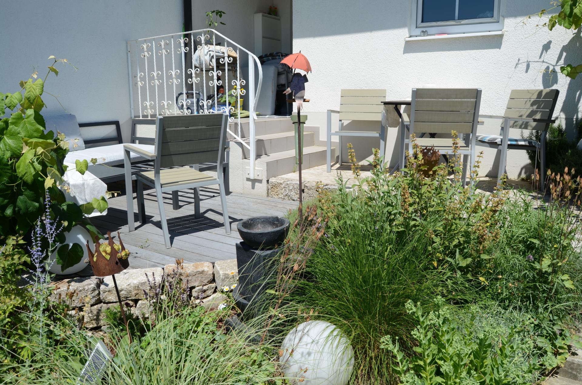 Terrassen erfüllen in den bei uns kostbaren schönen Tagen und Abenden häufig die Funktion eines Wohnzimmers: Man trifft sich in angenehmer Gesellschaft zum gemeinsamen Essen und Trinken, man unterhält sich oder man genießt eine schöne Umgebung und Stimmung ganz allein. Dafür soll die Terrasse bzw. der Freisitz einen passenden Rahmen bieten und sich gleichzeitig möglichst harmonisch in den Garten einfügen.